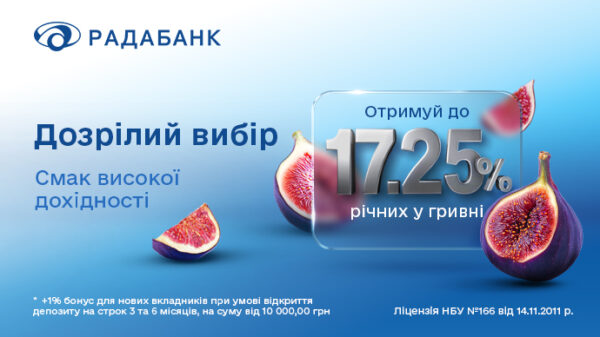 Отримуйте до 17,25% річних у гривні з депозитами від Радабанку. Спеціально для нових клієнтів: +1% бонусу до основної ставки для вкладів «Максимальний» і «Вигідний». Ваш капітал має...