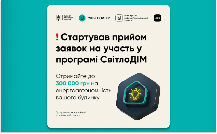 В Україні стартував прийом заявок на участь в урядовій програмі «СвітлоДІМ», яка передбачає державну підтримку багатоквартирних будинків для встановлення систем резервного електроживлення. Більше новин...