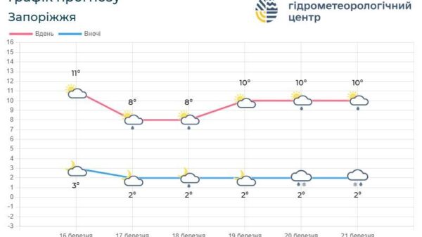 На початку тижня у Запоріжжі прогнозують невеликі опади і зниження температури повітря. 16–20 березня на погоду у Запоріжжі впливатиме поле підвищеного атмосферного тиску. Завтра...
