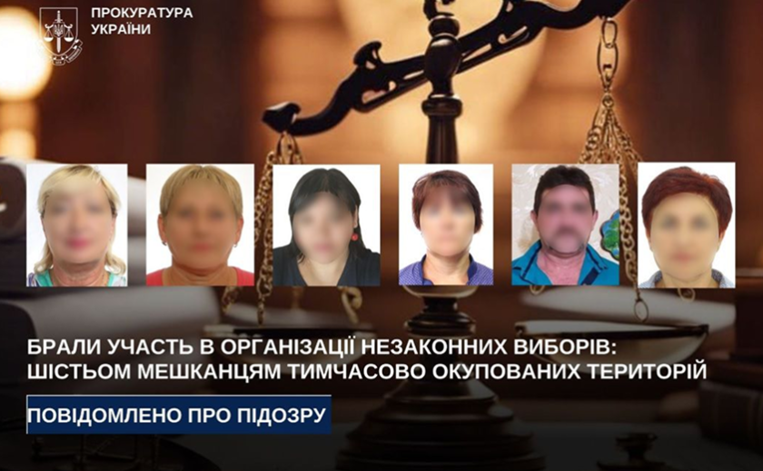 За процесуального керівництва прокурорів Запорізької обласної прокуратури шістьом громадянам України, які проживають на тимчасово окупованих територіях Запорізької області, повідомили про підозру у колабораційній діяльності, вчиненій за попередньою змовою групою осіб (ч. 2 ст. 28, ч. 5 ст. 111-1 КК України).