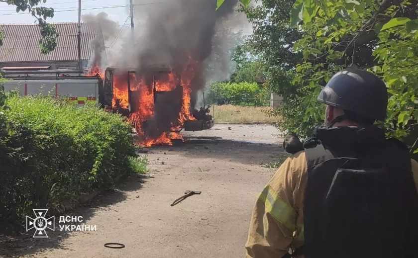 3 червня о 15:15 під час ліквідації пожежі в одному із сіл Василівського району ворог знову обстріляв рятувальників.