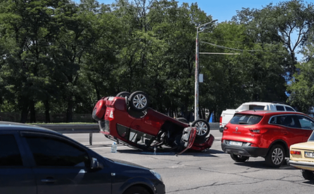 Сьогодні, 29 серпня, на Запорізькому шосе біля ТЦ Metro зіткнулися Renault та Chery. Від удару Chery перекинулась на дах.