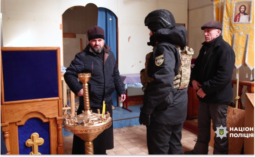Поліцейські Запорізької області спільно з Капеланським патрулем допомогли священнослужителю евакуювати церковні святині з прифронтового села Юрківка через складну безпекову ситуацію.