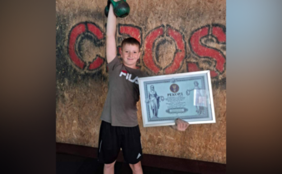 12-річний Андрій Бірців з Дніпра став рекордсменом України – за хвилину він 41 раз штовхнув дві гирі вагою по 8 кг.