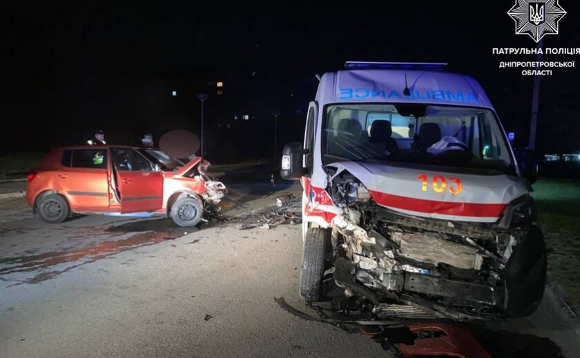 Вчора вночі, 6 квітня, у Самарському районі Дніпра на вулиці 20-річчя Перемоги сталася ДТП із потерпілими за участі автомобіля швидкої допомоги та Skoda Fabia.
