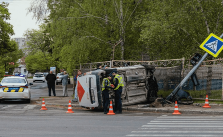 Сьогодні вранці, 7 травня, близько 07:30, на вулиці Космічний у Дніпрі сталася аварія. Там автомобіль Renault "Нової пошти" перекинувся на бік. Інцидент стався на перехресті з проспектом Праці.