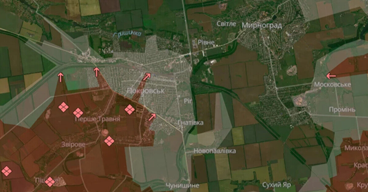 Аналітичний проєкт DeepState iнформує, що ворог продовжує своє накопичення в Покровську, ситуація залишається критичною. В разі окупації Покровська, Мирноград ризикує опинитися відрізаним від "зовнішнього" світу. "Ворог продовжує своє накопичення в місті, де здійснюється його постійна фіксація та ураження буквально по всьому населеному пункті. Одночасно з цим, йде поступове його поглинання, де кацапи вже здійснюють контроль над місцевістю, облаштовують позиції, мають місця для накопичення та контролюють свою логістику для просочування в місто… Ситуація залишається критичною. І якщо в контексті Покровська ми говоримо про поглинання міста, то Мирноград просто відрізається від "зовнішнього" світу і його втрата буде найбільш прикрою серед усіх великих міст, адже його візьмуть, навіть нормально не закріпившись там". За даними проєкту, у Покровську тривають спроби зачистки і ліквідація ворога всіма наявними спроможностями, де ключову роль відіграють дрони. Противник пробує також взяти під контроль місцевість між Покровськом та Гришиним. В цій місцевості активно тривають фізичні зачистки спеціальними групами, адже це ключова ділянка логістики в Покровськ. Однак це все не вирішує головної проблеми — блокування противника на південних околицях, щоб унеможливити просочування в місто. Повідомляється, що там окупанти уже облаштовують позиції і беруть під контроль місцевість. Нагадаємо: Аналітичний проєкт DeepState повідомив зранку 4 листопада, що російські окупаційні війська просунулися у Харківській області, а також в агломерації Покровська. Вранці 4 листопада у Головному управлінні розвідки розповіли, що продовжують спецоперацію у Покровську, разом з додатковими силами спецпідрозділи спиняють спроби окупантів розширити вогневий вплив на логістику в зоні відповідальності. 3 листопада головнокомандувач ЗСУ Олександр Сирський заявив, що українські війська намагаються змусити ворога розпорошувати сили й унеможливити концентрацію основних зусиль у районі Покровська. 1 листопада Сирський заявив, що оточення чи блокування Покровська і Мирнограда Донецької області немає, а у Покровську триває комплексна операція зі знищення й витіснення ворога, до якої залучені, зокрема, Сили спецоперацій, СБУ, ГУР.