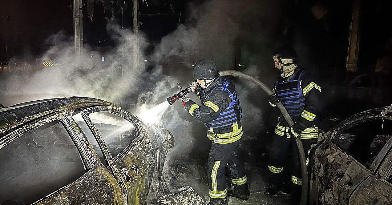 У Броварському районі Київської області двоє людей постраждали внаслідок нічної атаки російських дронів. Про це повідомляє Державна служба України з надзвичайних ситуацій."Уночі російські БПЛА влучили по території Броварського району. Через влучання на парковці спалахнули два вантажні та два легкові авто, ще 19 транспортних засобів пошкоджено", – ідеться в повідомленні рятувальників.Також сталося загоряння автосалону і шести автомобілів всередині. Вогнеборці врятували адміністративну будівлю.Внаслідок атаки травмовані двоє людей.До ліквідації наслідків залучалися 62 рятувальники і 14 одиниць техніки.
