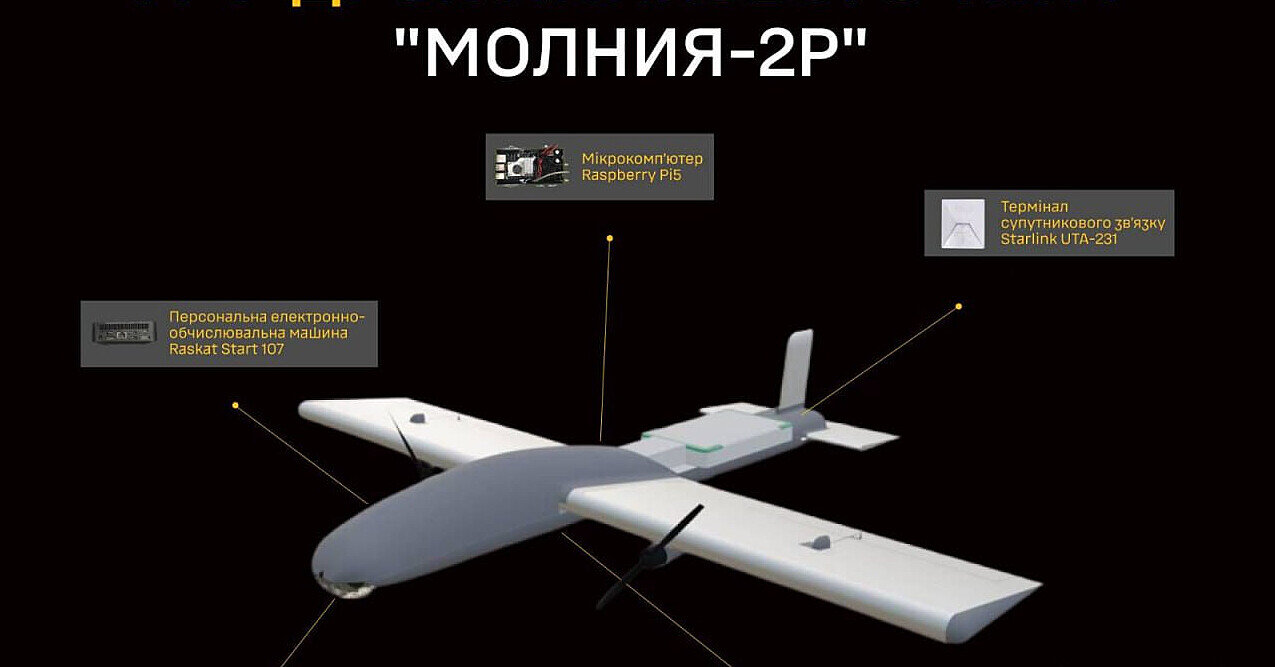Раніше українська розвідка повідомляла про застосування росією FPV-камікадзе літакового типу "Молнія", який запускався зі спеціальної катапульти та наводився на ціль оператором. Згодом противник почав використовувати модифікацію "Молнія-2" з двома двигунами на крилах, доопрацьованим фюзеляжем, збільшеною дальністю польоту та посиленою бойовою частиною."Наразі зафіксовано нову адаптацію цього БпЛА – "Молнія-2Р", призначену для ведення повітряної розвідки. Для цього російські розробники інтегрували до апарата мікрокомп'ютер Raspberry Pi 5, а також китайський Mini PC F8, промаркований російським брендом Raskat (ТОВ "НОВЫЙ АЙ ТИ ПРОЕКТ") з установленою ліцензійною операційною системою Windows 11", – йдеться в повідомленні ГУР. У розвідці додали, що крім курсової FPV-камери безпілотник отримав додаткову китайську камеру SIYI ZR10 з десятикратним оптичним зумом і тривісною стабілізацією, що суттєво розширює можливості спостереження та коригування.