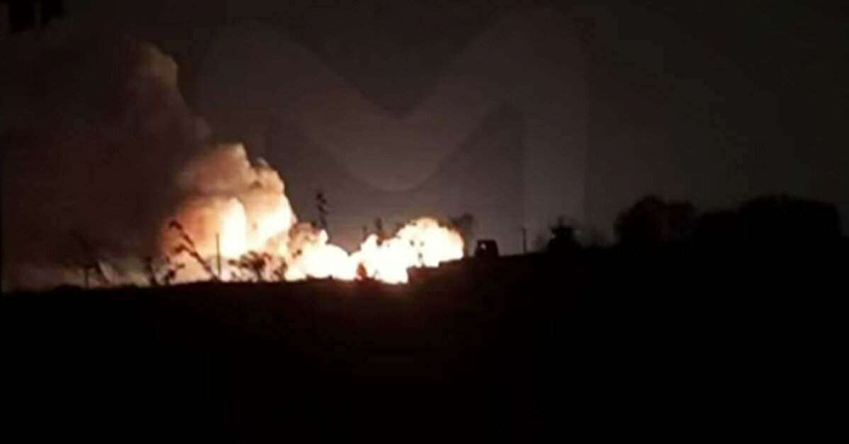 Після вибухів на військовому аеродромі зайнялася масштабна пожежа.