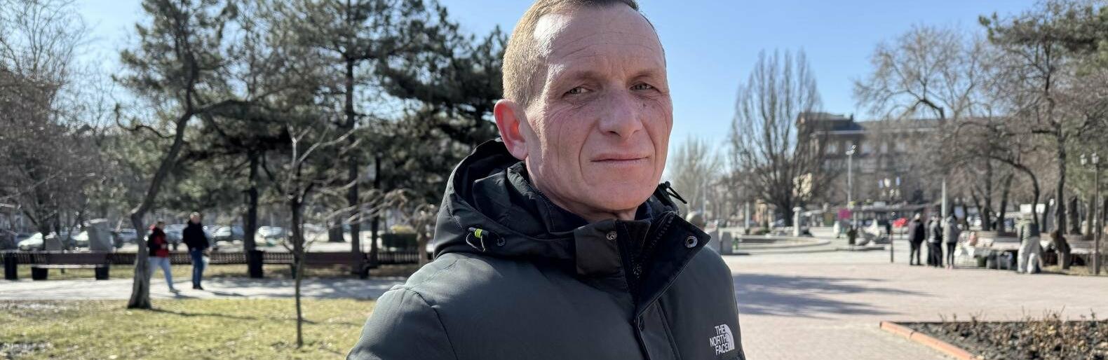 Ми зустрічаємося недільного дня у центрі міста, на площі Митців. Акурат під час нашої зустрічі – у місті оголошується повітряна тривога. Сирени, що тут встановлені, починають доволі гучно вити. В перехожих на долю секунди на обличчях проскакує невдоволення, а втома стає ще більш виразною. Але – не в Дмитра. Він захоплений розмовою зі своєю колегою, нашим сьогоднішнім перекладачем, Оленою Семенютенко, виконуючою обовʼязки голови Запорізького обласного осередку товариства глухих. Тож чоловік не відчув, як завібрував телефон зі сповіщенням про небезпеку. І просто не знає про неї, адже не чує.