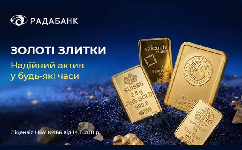 Асортимент золотих злитків у Радабанку: