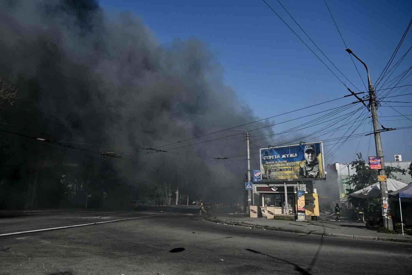 У результаті влучання зайнялися зупинка громадського транспорту, а також магазини, що розташовані поруч. Вибуховою хвилею пошкоджено маршрутне таксі, житлові будинки та цех підприємства. На місці виникли пожежі. За словами заступника начальника з реагування на надзвичайні ситуації 4 державного пожежно-рятувального загону підполковник служби цивільного захисту Олега Панасенко, вогнем охоплено площу 500 метрів квадратних. "Пожежа ліквідована, наразі особовий склад ДСНС проводить розбір зруйнованих конструкції, проливку місць горіння аби уникнути повторне загоряння", – додав рятувальник.