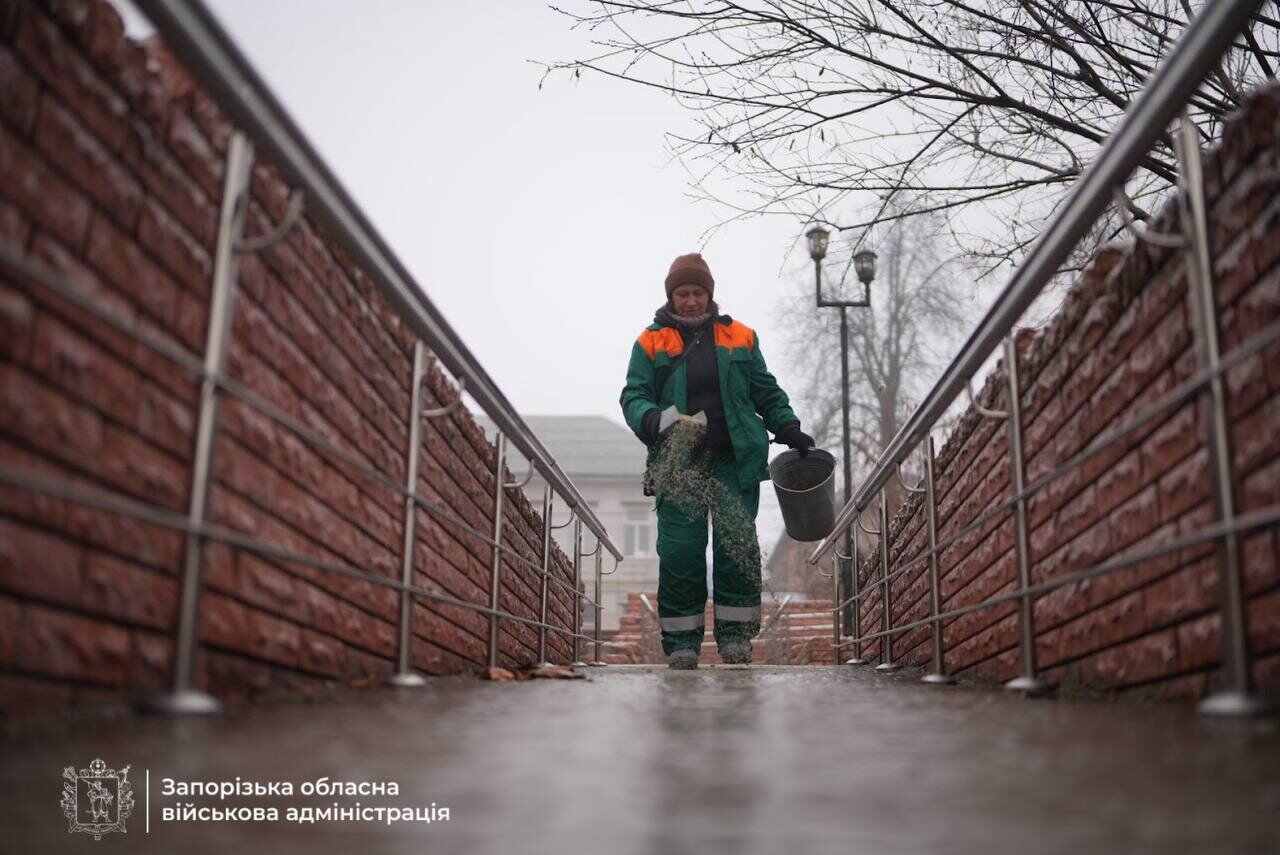 Через несприятливі погодні умови вулиці Запоріжжя вкрились кригою. Тротуари та дороги схожі на ковзанки. З самого ранку на автошляхи Запорізької області виведені понад 50 одиниць спеціалізованої техніки для боротьби з ожеледицею.