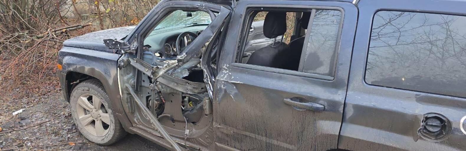 21 листопада у прифронтовому місті Гуляйполе ворожий безпілотник атакував евакуаційний автомобіль поліції. Машина зазнала пошкоджень, однак поліцейські та мирні мешканці не постраждали, повідомили в обласному управлінні Нацполіції.