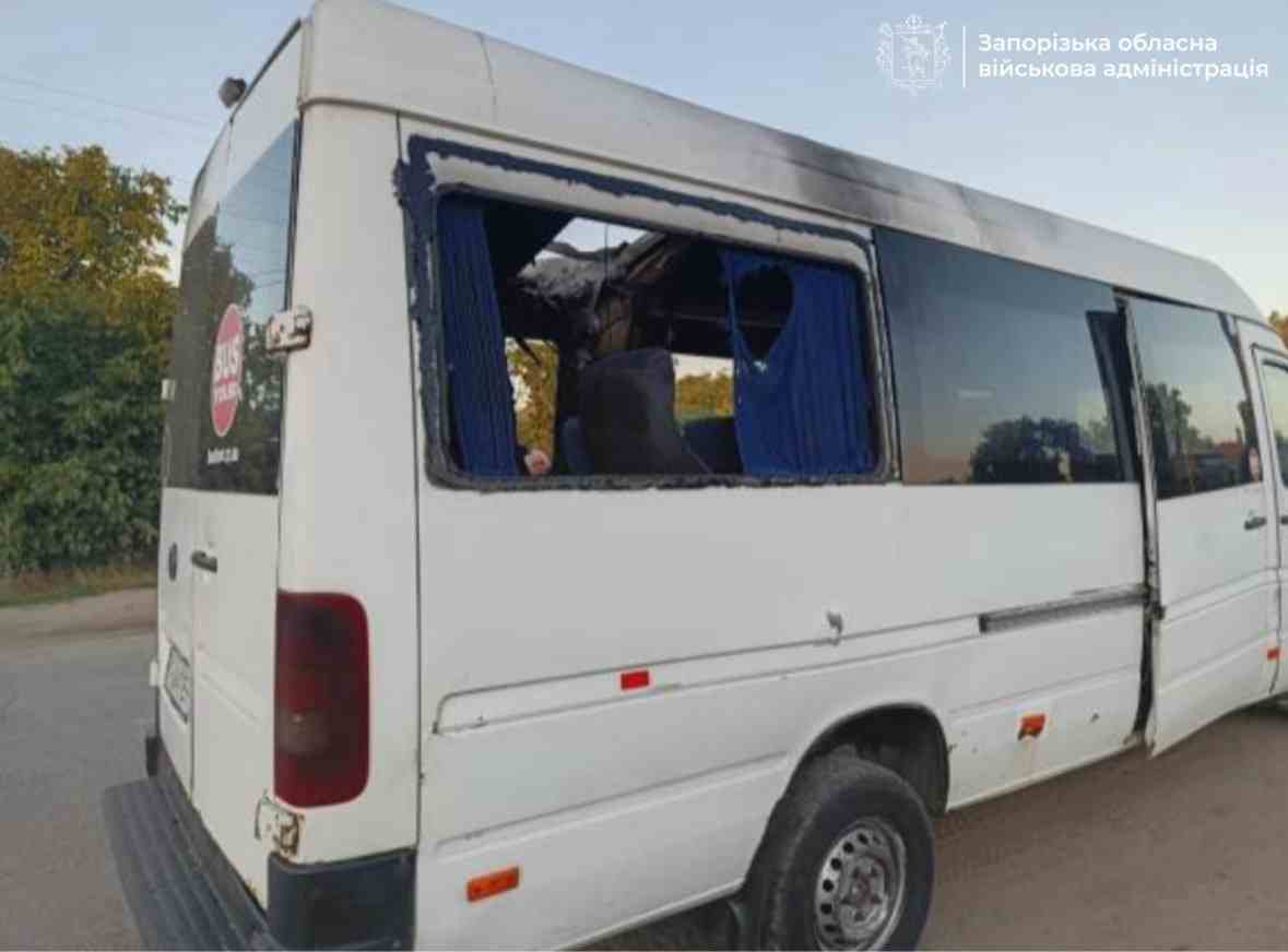 Ворожий дрон влучив у мікроавтобус, що їхав по селищу у Запорізькій області, поранено людину